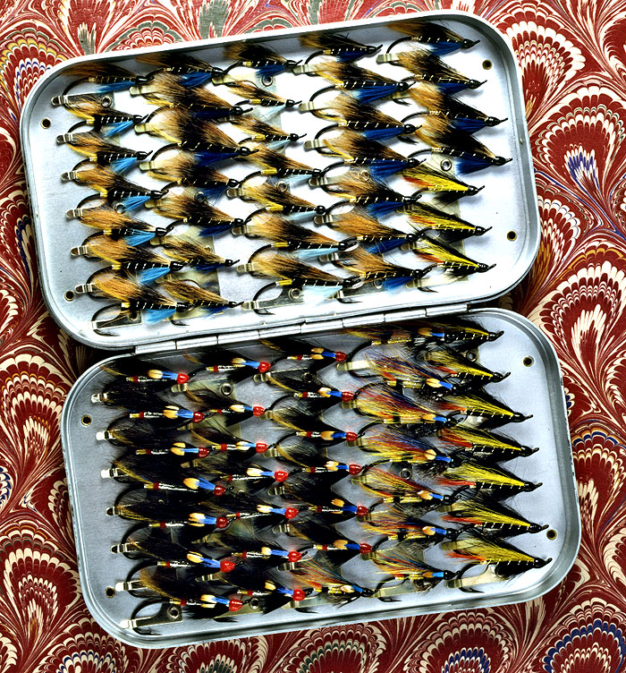 While the core of the collection is hairwing Atlantic salmon flies, there are also featherwings, buckbugs, dry flies, streamers, marabous, rabbit strip patterns, and many more styles and types that have proved effective over the past 30 years. The majority of these flies were tied to be fished, but the sheer artistry of the men who tied them makes all these flies attractive display objects as well.